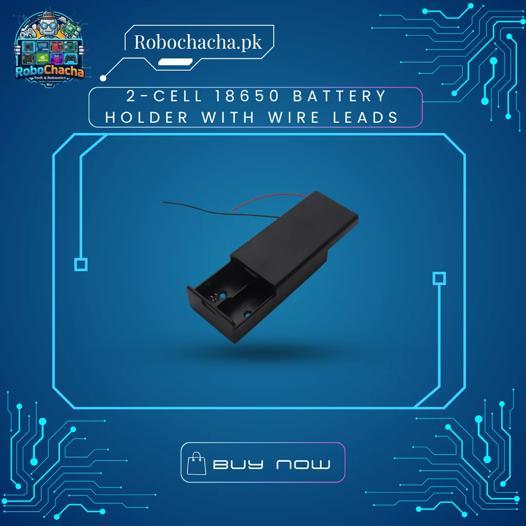 The 2-Slot 18650 Battery Holder is designed to hold two standard 18650 Lithium-Ion cells. Constructed from impact-resistant ABS plastic, it features heavy-duty spring contacts that ensure a consistent electrical connection even in high-vibration environments like mobile robots or RC cars. The holder comes with pre-soldered black and red wire leads, making it “plug-and-play” for your breadboard or custom PCB projects.