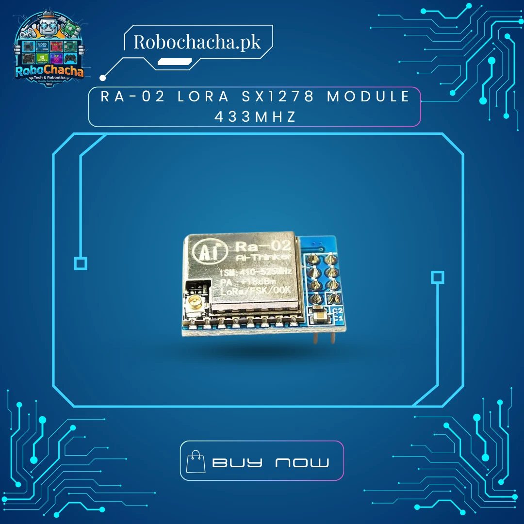 The Ra-02 LoRa Module is based on Semtech’s SX1278 wireless transceiver. It uses patented LoRa (Long Range) spread spectrum technology to achieve extreme communication distances with high interference immunity. Unlike Wi-Fi or Bluetooth which struggle with walls and distance, LoRa can penetrate obstacles and transmit data over several kilometers. It’s designed for “set-and-forget” battery-powered nodes that only need to send small amounts of data (like sensor readings) over long distances.